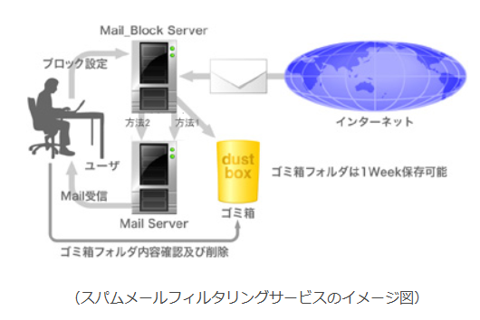 ![]() サーバ購入、ソフトウェア購入費用や管理業務の増加が必要なく、低コストのランニング費用にてスパムメールをブロックするシステムを利用して頂くことができます。 ● スパムメールデータベース登録のメール受信拒否 世界で登録されているスパムメール及びスパムメールと判断されるメールを受信拒否することができます。 ベイズ理論を利用した学習型のフィルタリングを行います。 ● ユーザで登録したメールアドレスからのメールの受信拒否 受信拒否したいメールアドレスを登録することにより登録されたメールアドレスからのメールを受信拒否できます。 ● ウェブ上でユーザの設定変更が可能 上記設定はブラウザのウェブ上で簡単に登録、追加、変更が可能です。(ユーザ個々にパスワードで管理) ● 判別したスパムメールの処理方法は2つ 方法1.受信拒否されたMailは個人のゴミ箱フォルダに一時格納されます。ウェブ上でゴミ箱フォルダ内のMailの確認が行えます。 方法2.受信拒否されたMailは件名に[SPAM]を付加しお客様のメールボックスへ配送します ので、お客様ご利用のメールソフトでMailの確認が行えます。 ![]() ![]() ● ウェブ(ブラウザ)上でメールを受信、送信 ウェブメールは現在使用しているメールアドレスで受信、送信が可能であり、また、広告等の余分な内容が入りませんので通常のメールソフトのように利用可能です。 出張や旅行中の出先での利用のほか通常のメールソフトとして利用頂くこともできます。 また、一人1台のパソコンがなくても複数人でメールの利用が可能です。 ● 携帯電話での受信、送信 携帯電話やスマートホンでの利用が可能になります。 メール本文の長さを気にすることなく受信、送信ができますので利便性が向上します。 ![]() サーバ購入、ソフトウェア購入費用や管理業務の増加が必要なく、低コストのランニング費用にてメールウィルスチェック機能を利用していただくことができます。 ● ウイルスに感染した送受信メールを削除します。 ● ゲートで行なう為、非常に高速なウィルスチェック処理、またISP様のメールサーバに負荷を与えません。 ● チェックはゲートで行う為非常に高速な処理が可能です。 メールサーバ等に組み込むタイプの仕組みでは、処理能力が遅くなる場合がありますが、本サービスでは高速な処理を実現しております。 ● ユーザが大幅に増加したり、インターネットの使用方法が変化してメールの流通量が増大したりといった場合はスペックの強化は当社にて行いますのでその都度サーバ追加購入が必要ありません。 ● ASPサービスのため、進化するウイルスに最速で追従が可能です。 ● 24時間の監視体制 機器のトラブル等についても当社にて機器交換等を行いますのでお客様に負担のないような仕組みになっております。 ![]() |