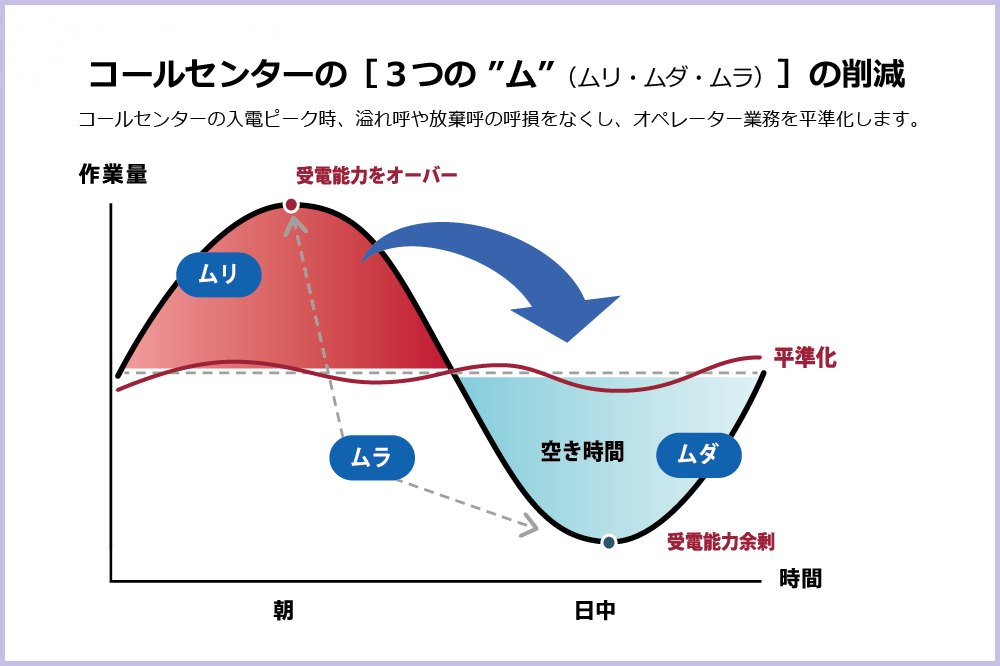 コンタクトセンターの3つの"ム"(ムリ、ムダ、ムラ)を削減します。