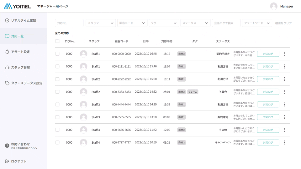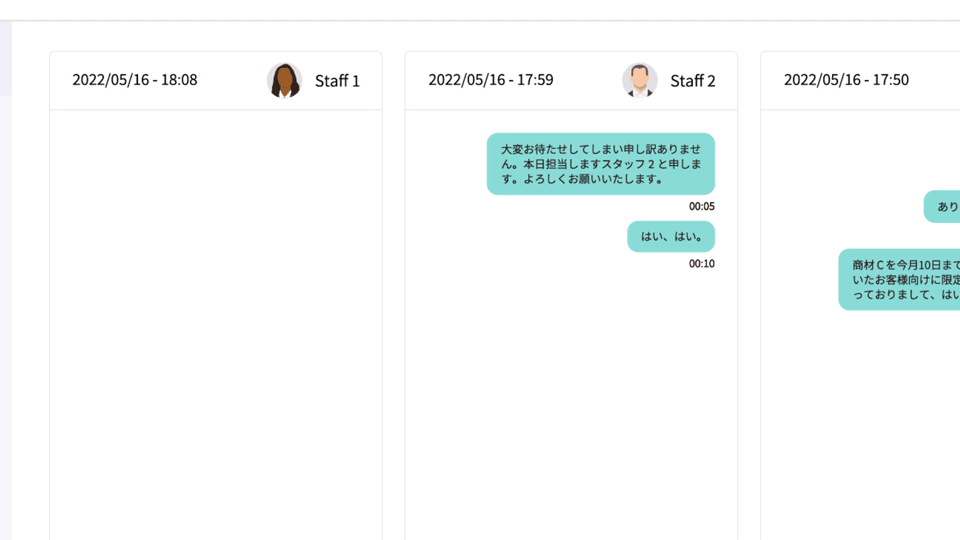![]() AIがお客様との会話を自動でテキスト化し、要約まで瞬時に提案します。手直しして登録しても、ゼロから書き起こすよりもACW工数を半減させることができます。 ![]() リアルタイムフォローシステムにより、SVはオペレーターの会話をテキスト形式で眺めながら必要な部分のみピンポイントで聞くようにすることで、品質を落とさず教育工数を大幅に短縮することができます。 ![]() お客様との会話で使ってはいけないキーワードを設定しておくことで、実際に現場で使われるとSVに即座に通知を飛ばすことができます。マネージャーによる不適切な対応のチェック工数を下げることができます。 |